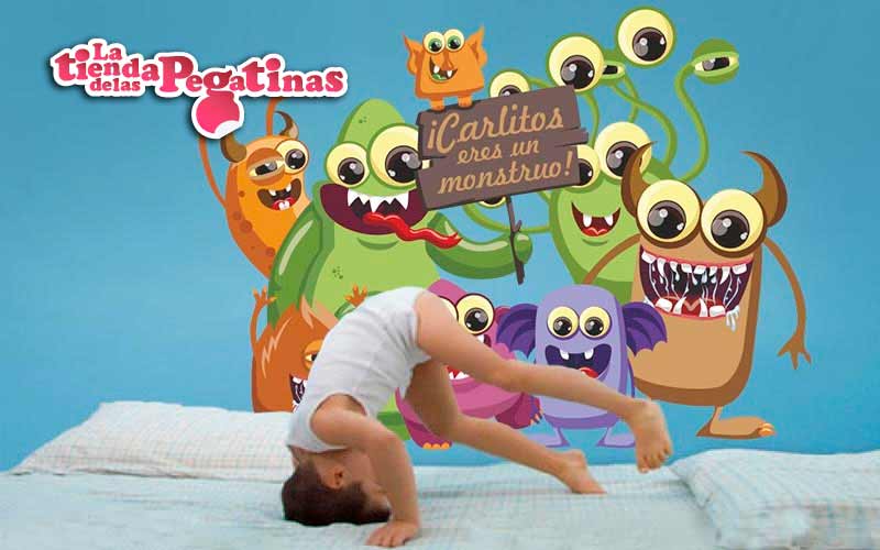 Y por último, te traemos al blog una bonita pegatina infantil de monstruos que además tiene la particularidad de poder personalizarse con el nombre de tu hijo o de tu hija. Un vinilo decorativo a todo color formado por un gracioso grupo de monstruos acompañados por un cartel que pone “¡(nombre del niño/a) eres un monstruo!. Un vinilo infantil a todo color con el que poner un toque de fantasía a la habitación de nuestros hijos.