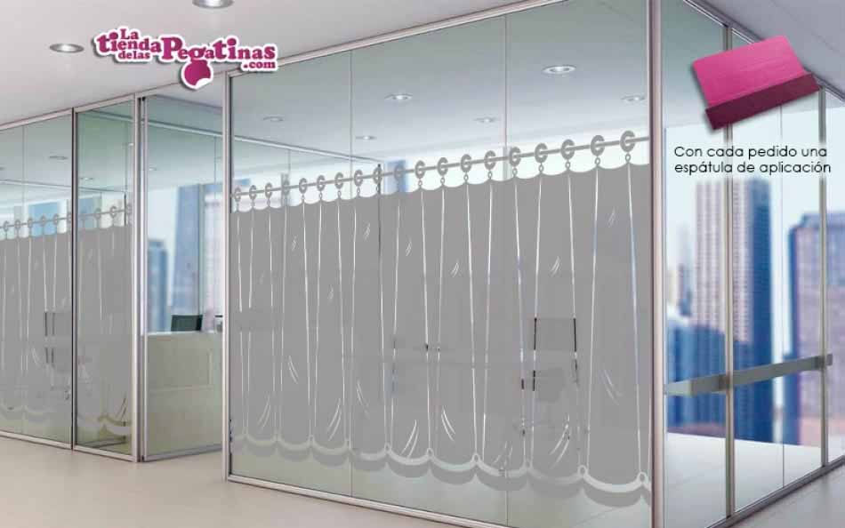 Vinilo decorativo con formas para decorar. Es una cortina de 146 cm colgada de una barra con separadores cada 13,5 cm. Lo puedes usar en cualquier tipo de superficie transparente, incluso el metacrilato. Puedes colocarlo en cristaleras, ventanas, mamparas, despachos, recepciones, halls de hoteles, y un largo etc....Este tipo de vinilo deja pasar la luz a la vez que proporciona intimidad al dificultar la vista a través del cristal. Su instalación es tan sencilla que solo necesitarás un vaporizador de agua y la espátula que te mandaremos. Puedes instalarlo en interiores y exteriores, ya que se trata de un material muy duradero, lavable, y que no dejará marcas en el cristal el día que lo retires. Por fin podrás dejar las cortinas abiertas a cualquier hora con total privacidad. ¡Además te encantará como queda sobre un espejo!