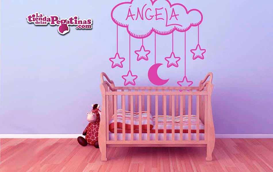 Vinilo decorativo perteneciente a la categoría de infantiles con el encanto del dibujo sombreado. Una preciosa pegatina de un movil con estrellas y una luna colgando. Es un diseño personalizado con el nombre que desees. Hazte hoy con ella con el mejor descuento. Indícanos el nombre que quieres en la casilla -Nombre personalizado-.