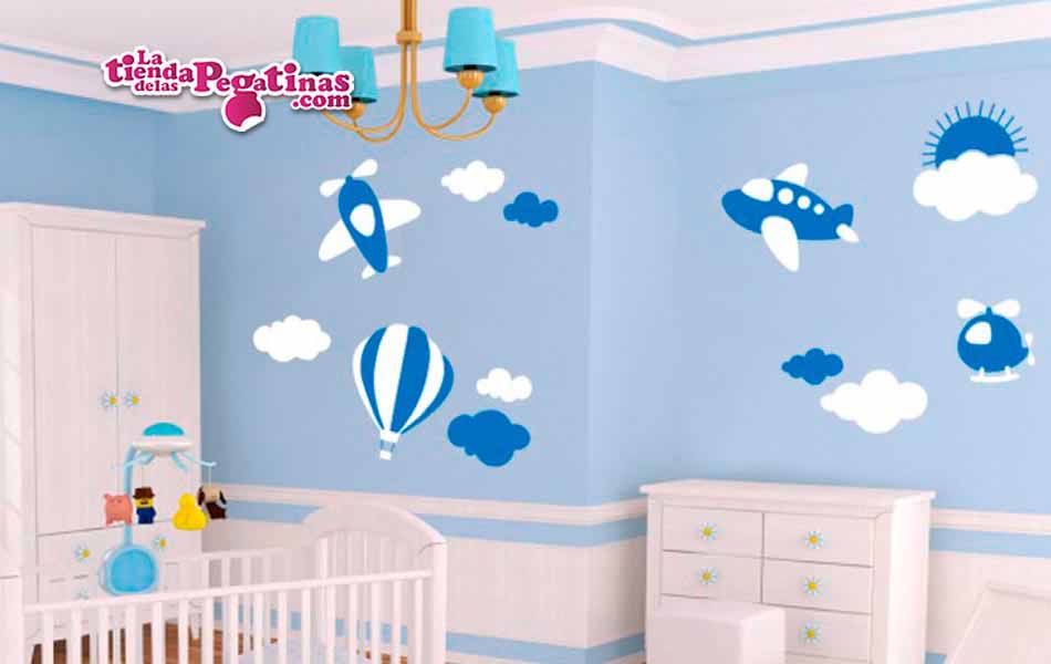 Vinilo decorativo de la categoría de infantiles que se compone por dos aviones, un helicóptero, un globo, y unas cuantas nubes, con lo que además de un diseño encantador, ésta es una pegatina con la que podrás decorar una o varias paredes ya que puedes pegar sus elementos por separado. Aprovéchate además de nuestros fantásticos descuentos.
