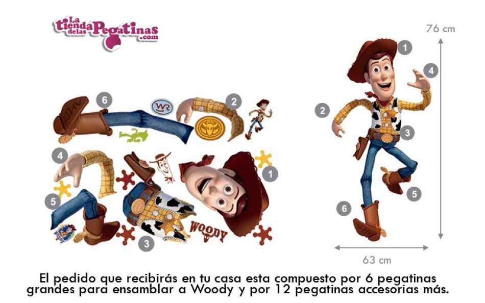 Vinilo decorativo infantil del protagonista de la película de Disney Pixar "Toy Story". Está formado por 6 pegatinas para componer a Woody y por 12 pegatinas accesorias más, y es tan realista que Woody parecerá cobrar vida como en la película. A tus hijos les encantará y a ti no te costará nada colocarla, ya que permite pegarla y despegarla durante el proceso de colocación hasta que quede perfecta.